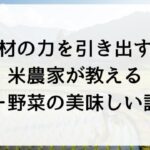 素材の力を引き出す!米農家が教えるミレー野菜の美味しい調理法